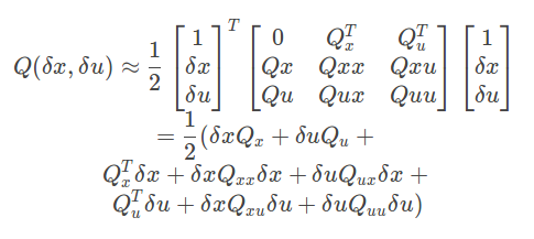 Q(\delta x,\delta u)\approx \frac{1}{2} \begin{bmatrix}