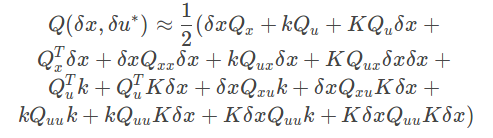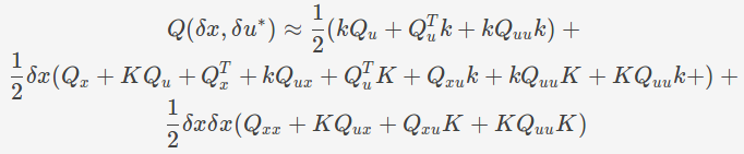 Q_x^T \delta x + \delta x Q_{xx} \delta x + k Q_{ux} \delta x + K Q_{ux} \delta x \delta x + \\