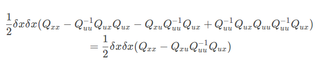 \frac{1}{2} \delta x \delta x (Q_{xx} -Q_{uu}^{-1}Q_{ux}Q_{ux} -Q_{xu}Q_{uu}^{-1}Q_{ux}
