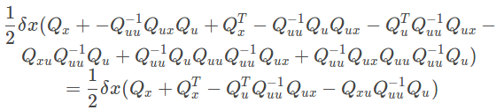 = \frac{1}{2} \delta x(Q_x + Q_x^T - Q_u^T Q_{uu}^{-1} Q_{ux} -Q_{xu} Q_{uu}^{-1} Q_u )