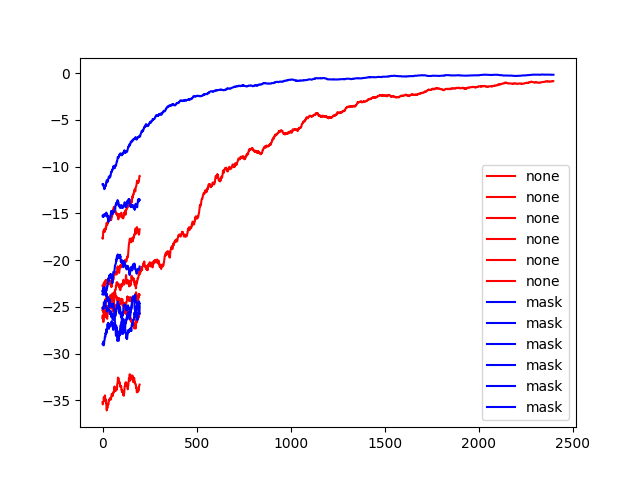 对于连续动作空间(Pendulum-v0),当仅训练 value loss 时,奖励不上升反而下降。