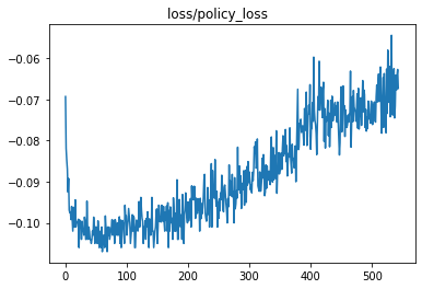 policy gradient loss 应该是由 0 下降,然后回到 0。