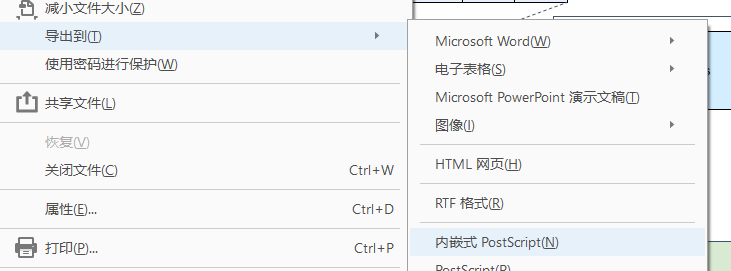 选择“导出”、“内嵌式 PostScript”